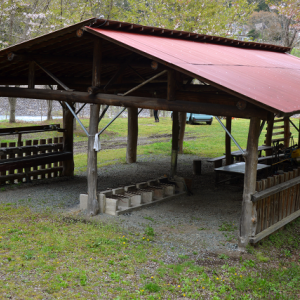 第一炊事場の半分ほどの設備ですが、すぐ横にテントサイトがあるので、空いている時ならテントとつながったキッチンのように使えます(^-^) かまどもありますのでご利用ください。