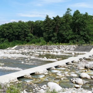 施設脇を流れる太田切川は自然公園として整備され川遊びが楽しめます。