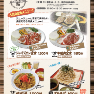 ・食堂では、ジンギスカン定食などのメニューを用意しています(金土日祝のランチ営業)