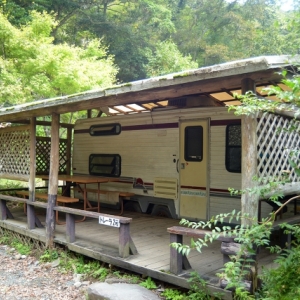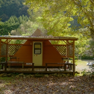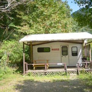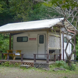 設備・・・上下段畳敷きベット(寝袋、毛布各4)・トイレ・ガスレンジ付きキッチン・ソファベット・テーブル・エアコン・電子レンジ・冷蔵庫・テラス(テーブル、椅子付き)・バーベキューグリル -