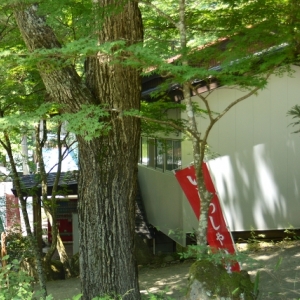 管理棟にあります。薪・炭・トイレットペーパー・氷・調味料・焚き火台・ホワイトガソリン等を販売しています。また、ニジマス(¥250-/匹・夏期限定)や漁猟券(¥1,000-/日)、キャンプファイヤーセット(¥7,000-・要予約)も取り扱っています。